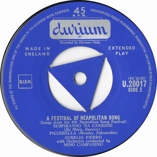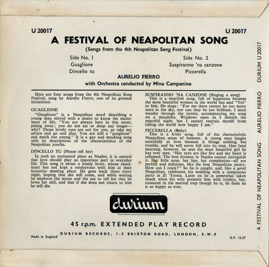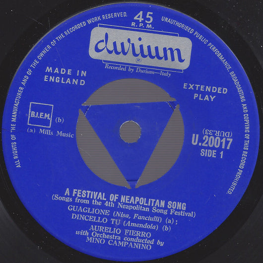 Aurelio Fierro With Orchestra Conducted By Mino Campanino - A Festival Of Neopolitan Song (7", EP)