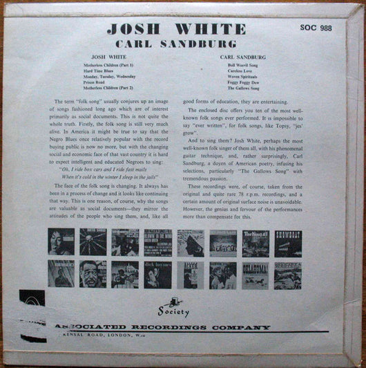 Josh White And Carl Sandburg - Josh White And Carl Sandburg (LP)
