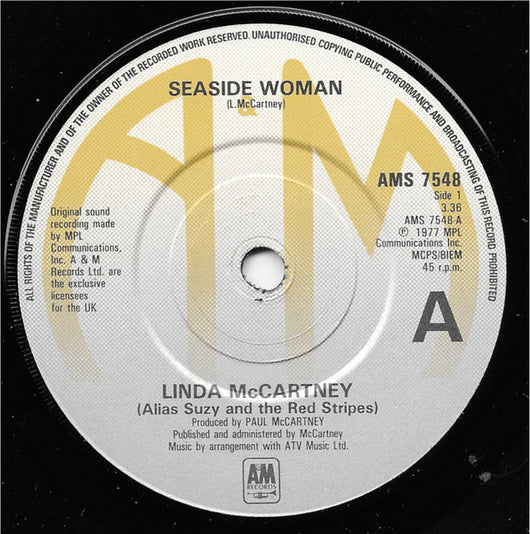 Linda McCartney Alias Suzy And The Red Stripes - Seaside Woman (7", Single, RE)